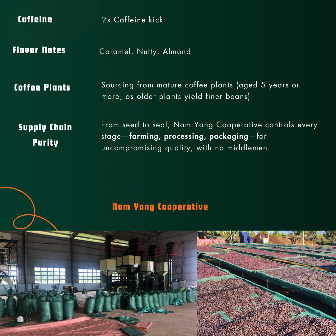 • Single Origin Excellence: Sourced directly from a single farm in Vietnam’s Central Highlands to guarantee traceability and consistent premium quality.
