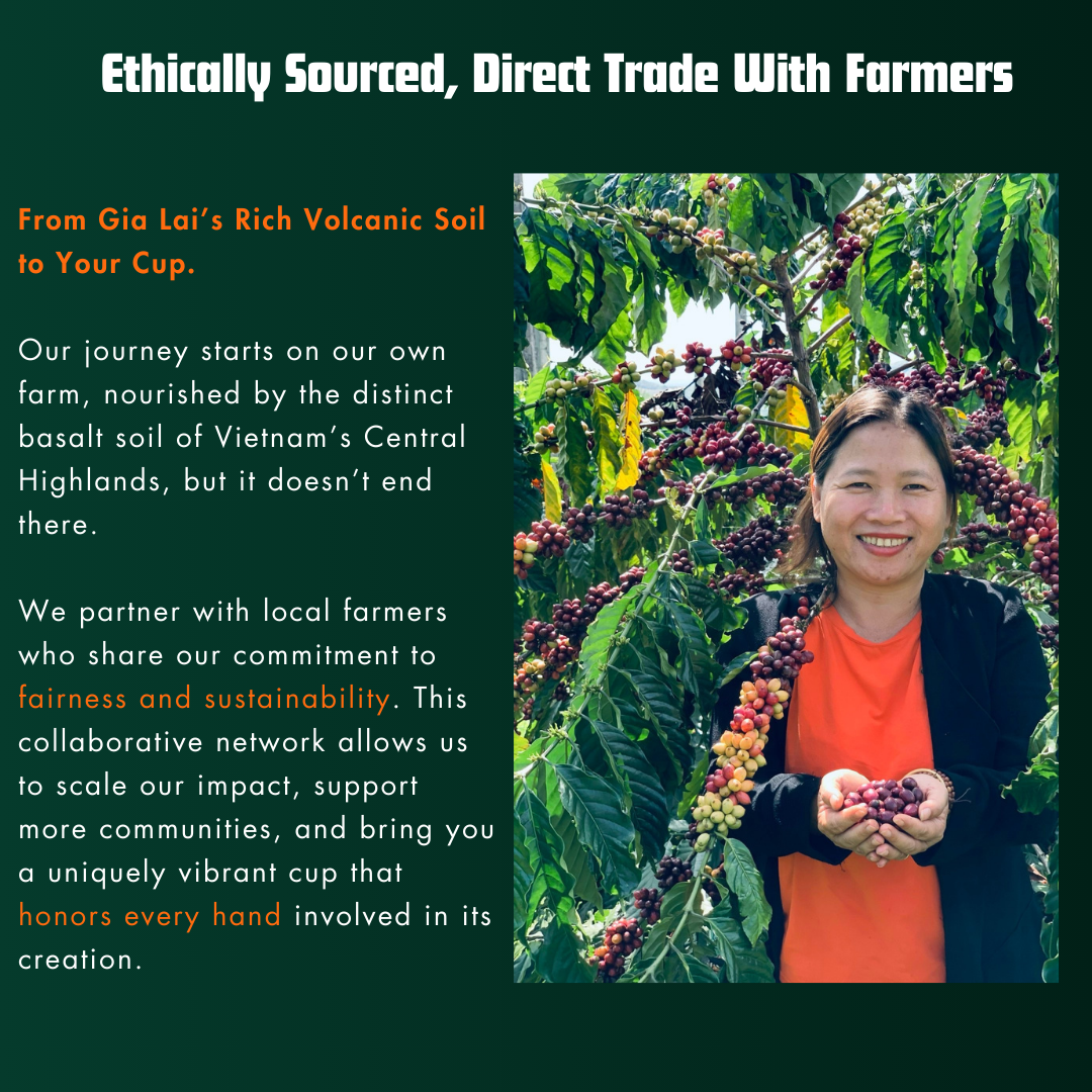 • Artisanal Harvesting: Unlike mass-produced coffee, our beans are hand-picked to capture the full sweetness and complexity of the Vietnamese coffee cherry.